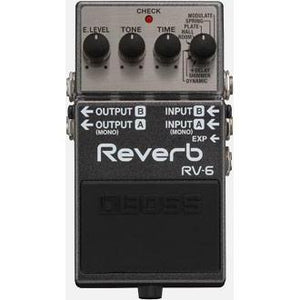 Combining high-end sound and wide-ranging versatility, the RV-6 takes pedal-based reverb to the next level. Reaching beyond the capabilities of previous generations, this powerful stomp employs the latest tech and legendary BOSS know-how to make it easy to get amazing reverb tones instantly. From subtle rooms to modern shimmer effects to long, evocative reverbs, the RV-6 envelops your tone in lush ambient spaces that endlessly inspire.
